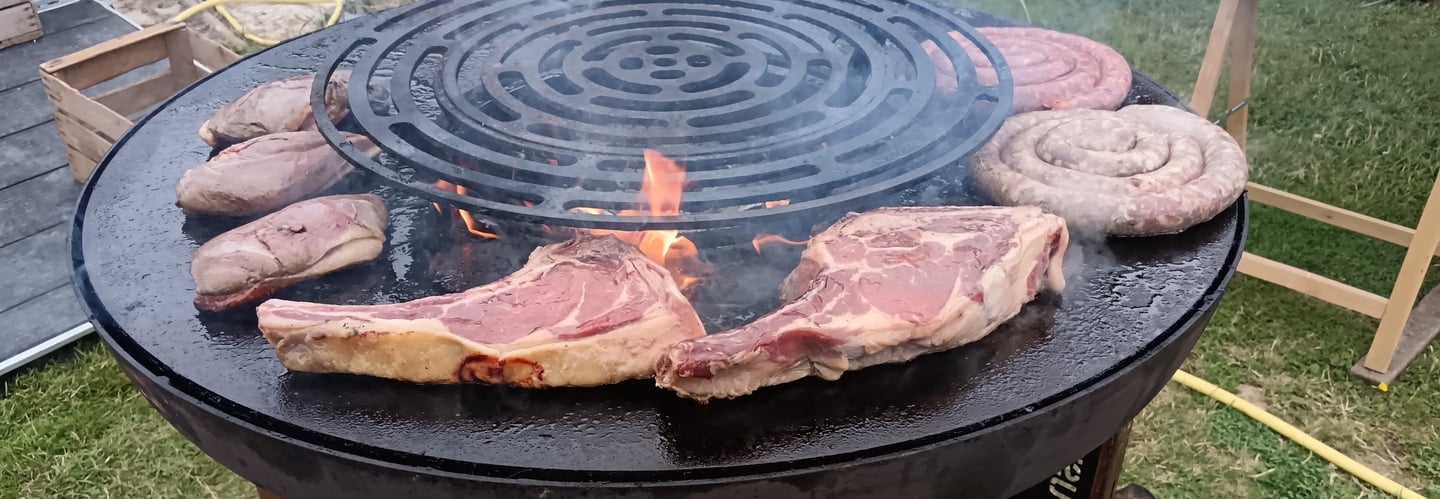 Nous sommes une association à but non lucratif passionnée par les moments de partage. Repas d’entreprise, anniversaires, mariages, fêtes de famille… nous venons chez vous ou sur le lieu de votre choix et cuisinons en live sur notre grand brasero de 1 mètre de diamètre pour régaler vos invités dans une ambiance chaleureuse et festive.