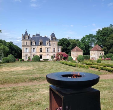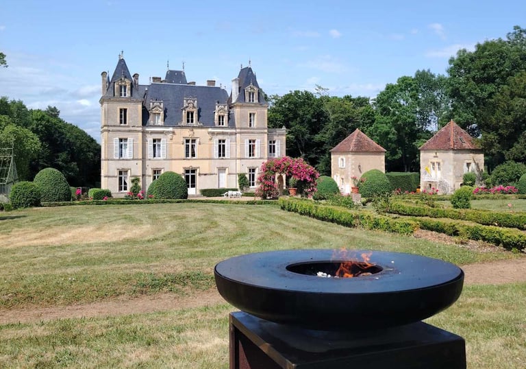 Notre brasero de 1 mètre de diamètre est notre marque de fabrique, offrant convivialité.